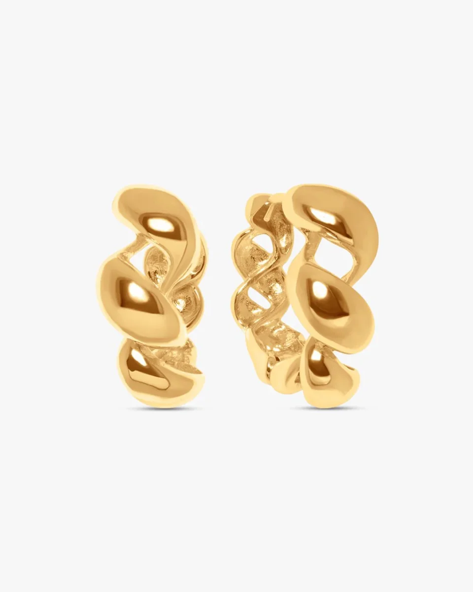 Små vridna creoler. Perfekta för att stapla. Material: Guldpläterat rostfritt stål.