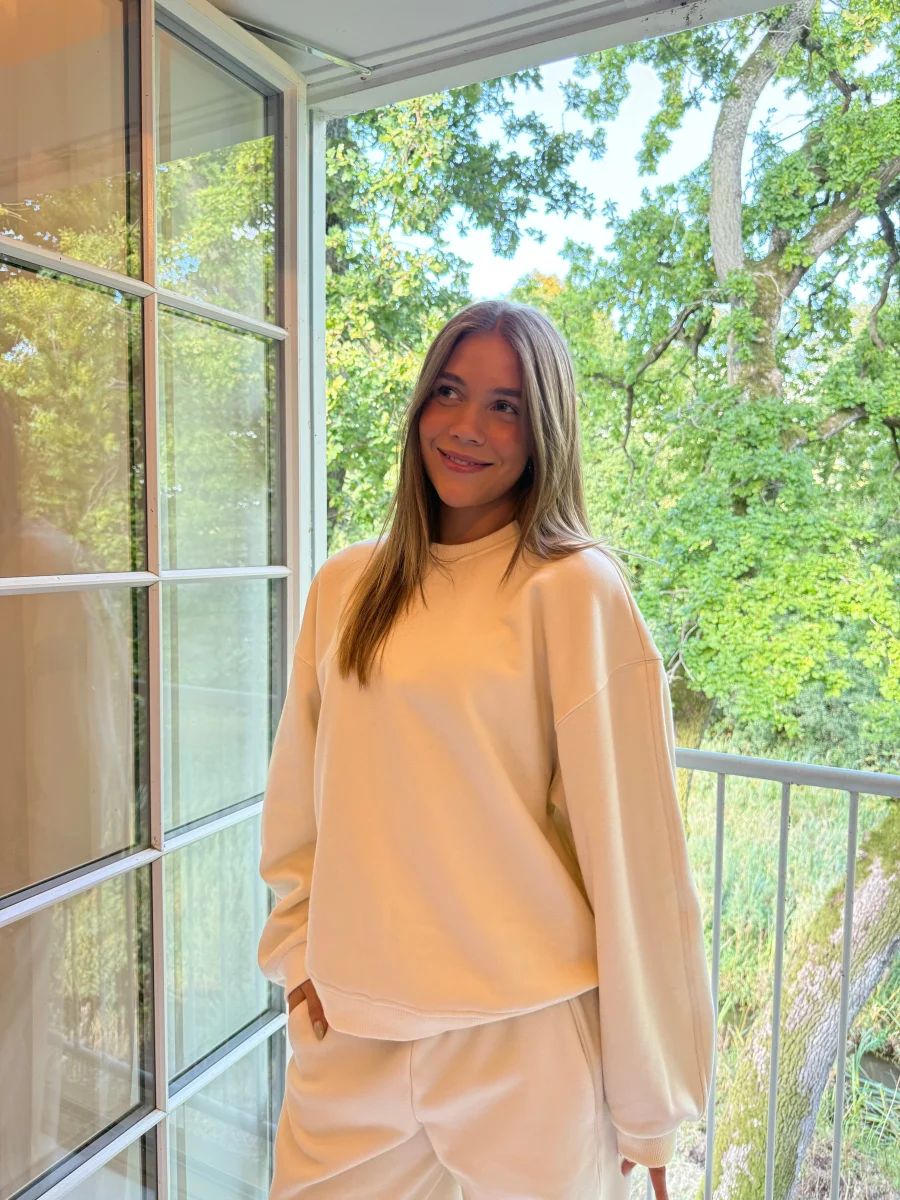 Den perfekta sweatshirten för avslappnade dagar och coola vardagsstilar. Filine Heavy Sweat Shirt har en tidlös design med rund hals, sänkta axlar och en lätt oversized passform som ger precis rätt avslappnade känsla. Den kan stylas med allt – både jeans, loungebyxor och de matchande sweatpantsen
