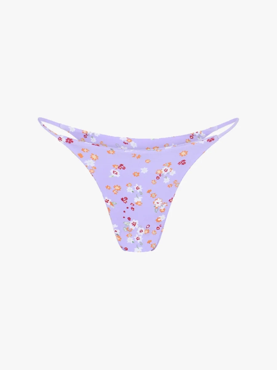 Söt bikini med blommönster. Underdelen har tunna band i sidorna.