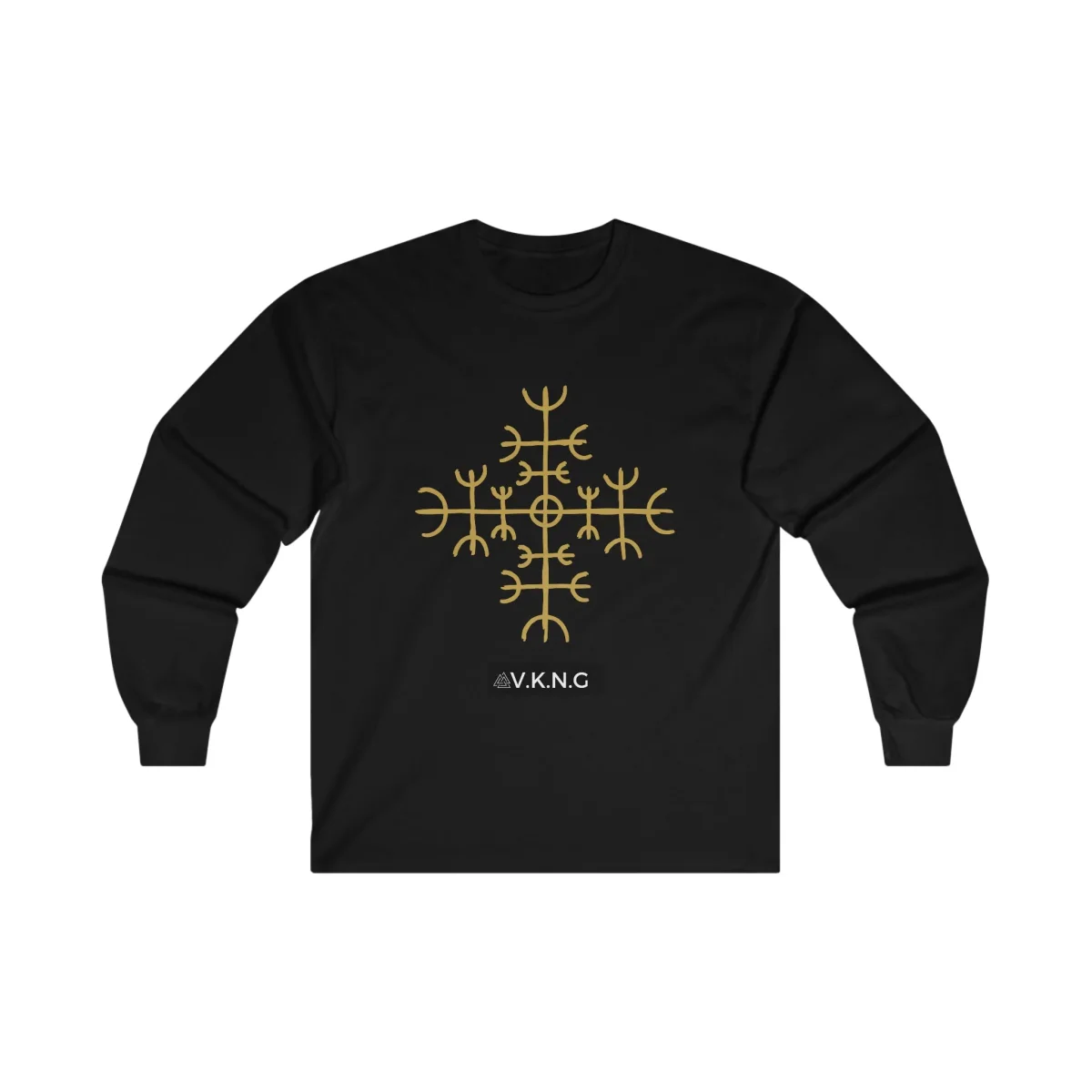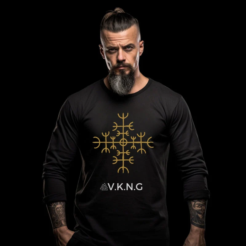 This high-quality t-shirt featured one of these Galdrastafir, known as Aegishjalmur or the Helm of Awe. It is comprised of repeating representations of the Alghiz rune, which is a symbol for protection.