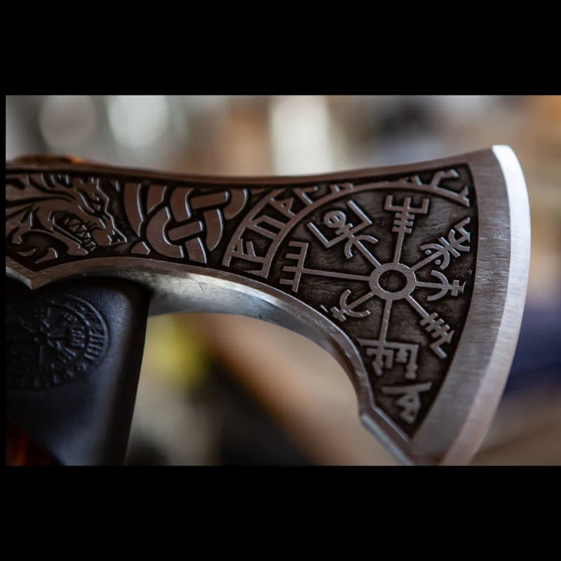 Hand-forged Fenrir Et Vegvisir Viking Axe