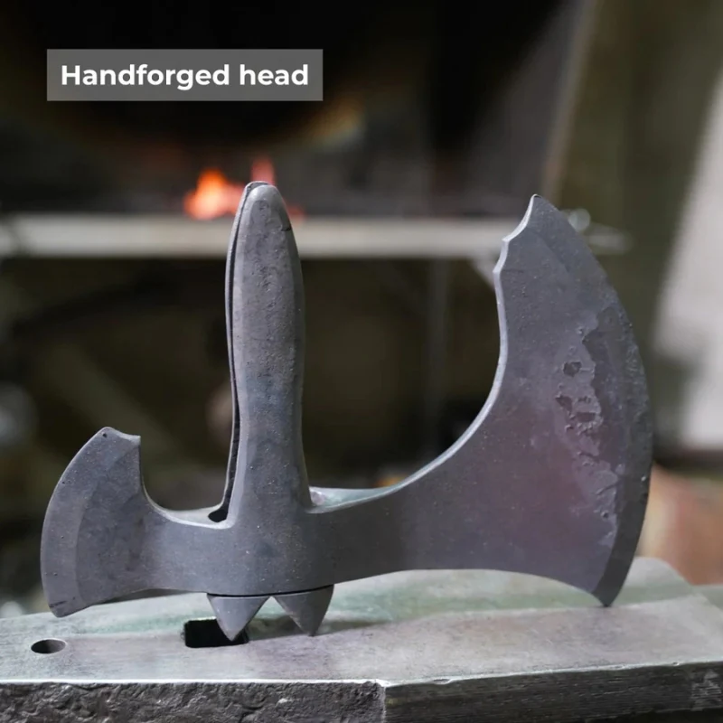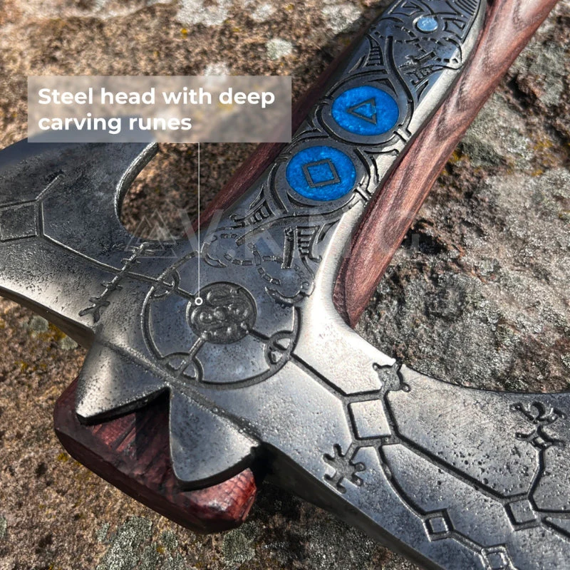 Hand-forged Ragnarok Kratos Axe With Carved Handle And Luminescent Runes Hand-forged