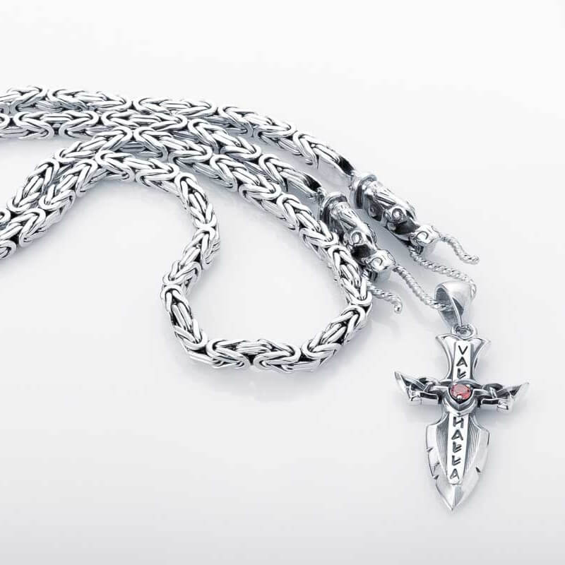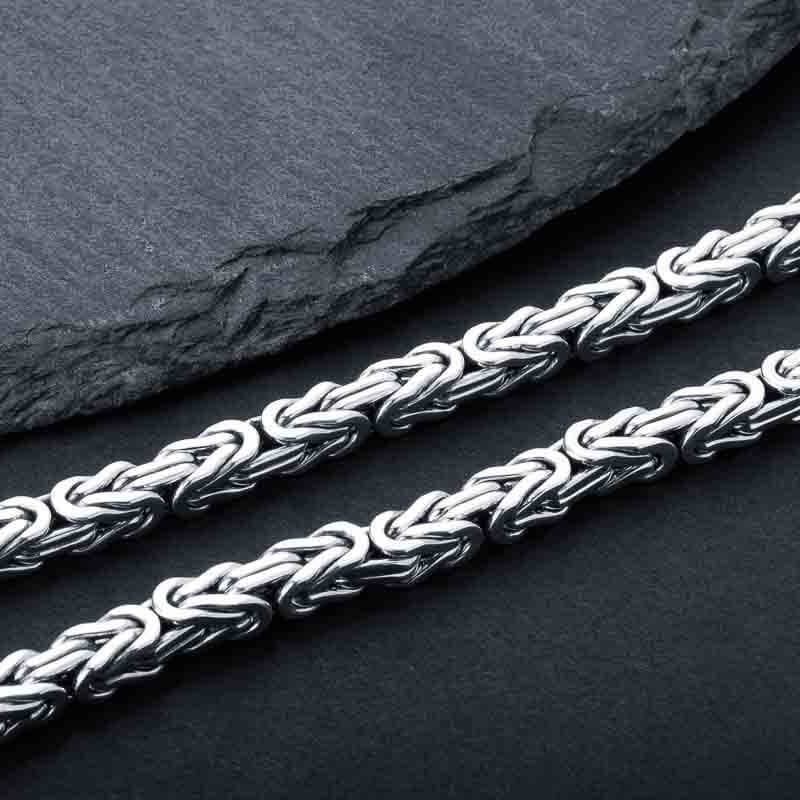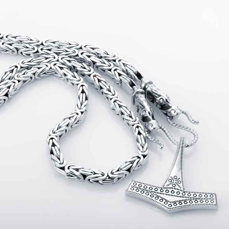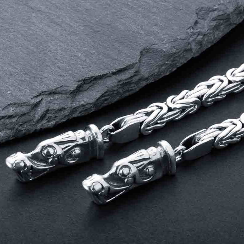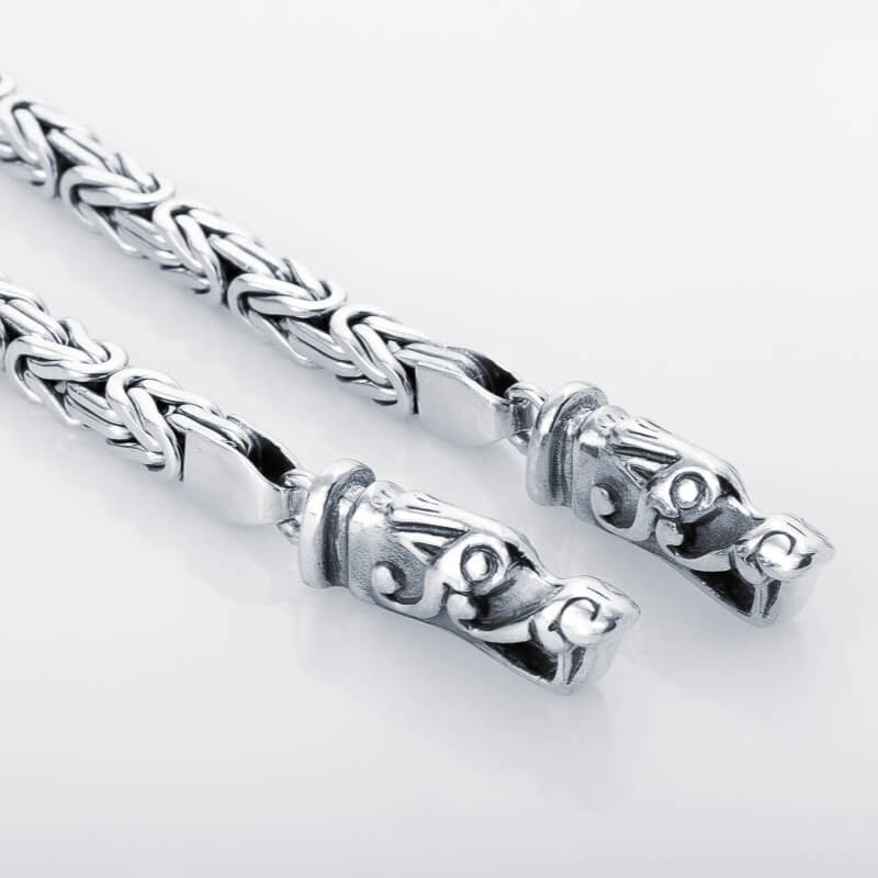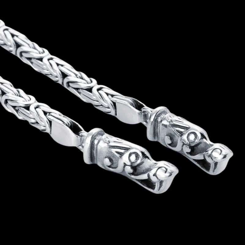 Handcrafted Square Viking Chain with Wolf Tips Sterling Silver Norse Jewelry