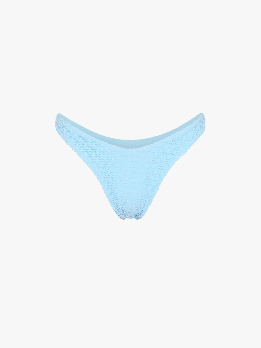 Söt och enkel med en twist! Denna bikiniunderdel har en smickrande v-formad passform och är tillverkad av ett härligt texturerat material som känns bekvämt mot huden. Den ljusblå färgen skapar den perfekta sommarlooken.
