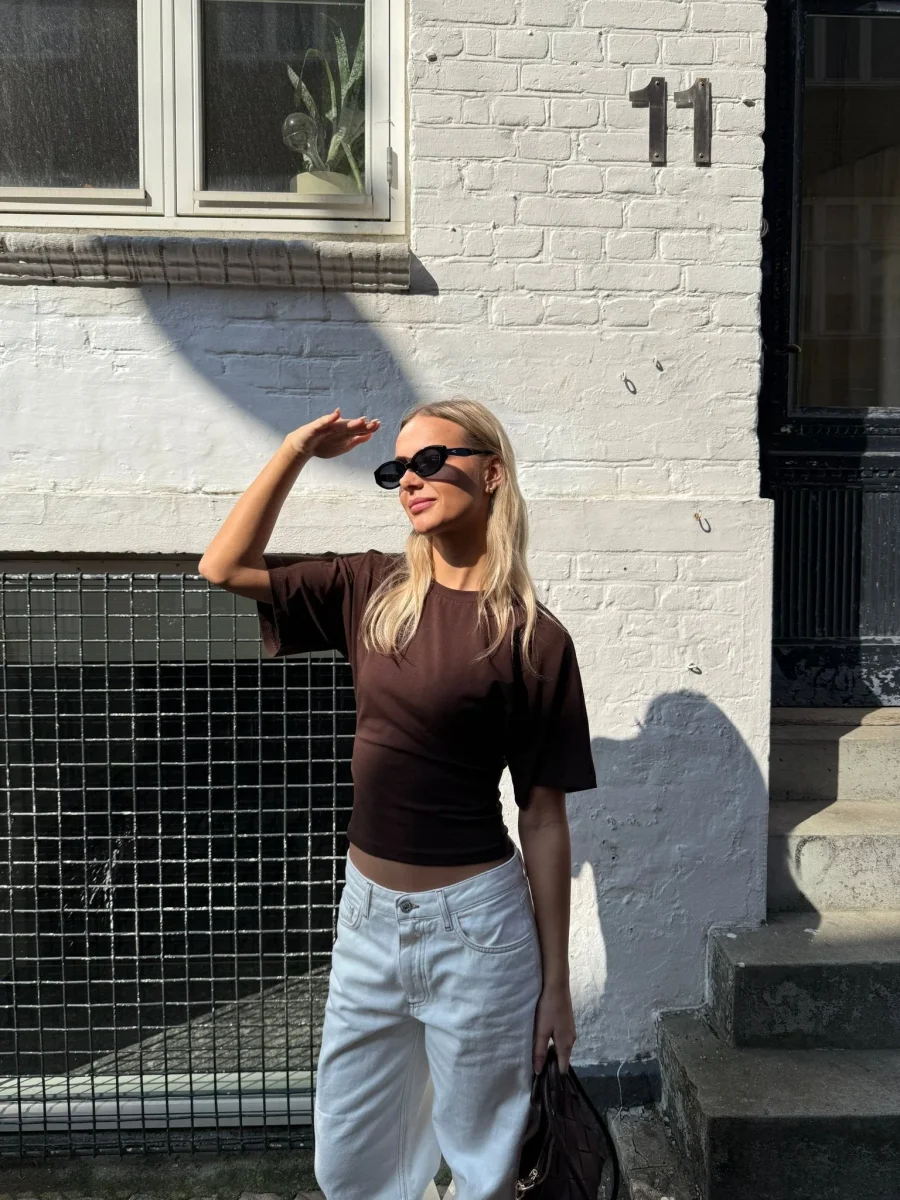 En topp du alltid kan bära! Den har en superflatterande midjeform och korta ärmar som gör den både enkel och feminin. Tyget är mjukt och stretchigt, så den sitter fint utan att vara tajt.