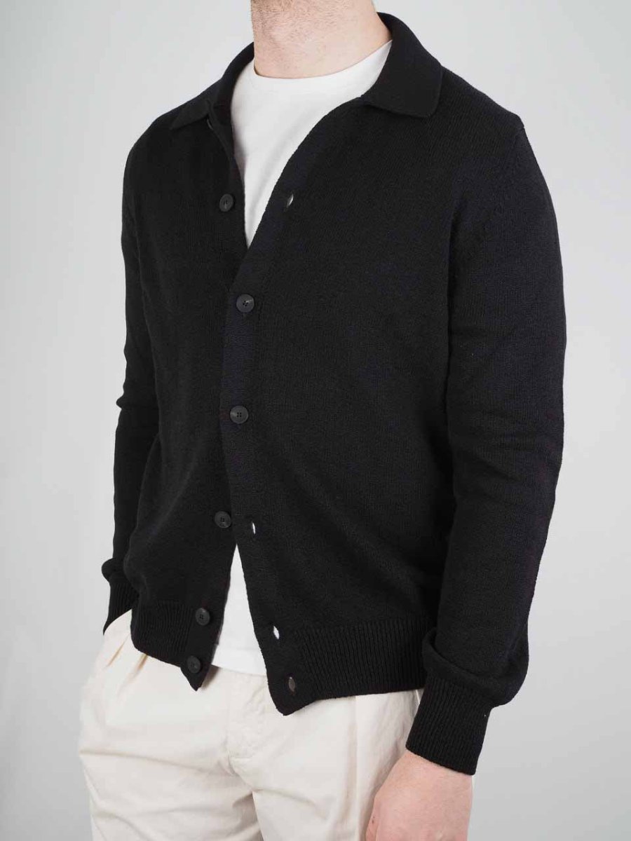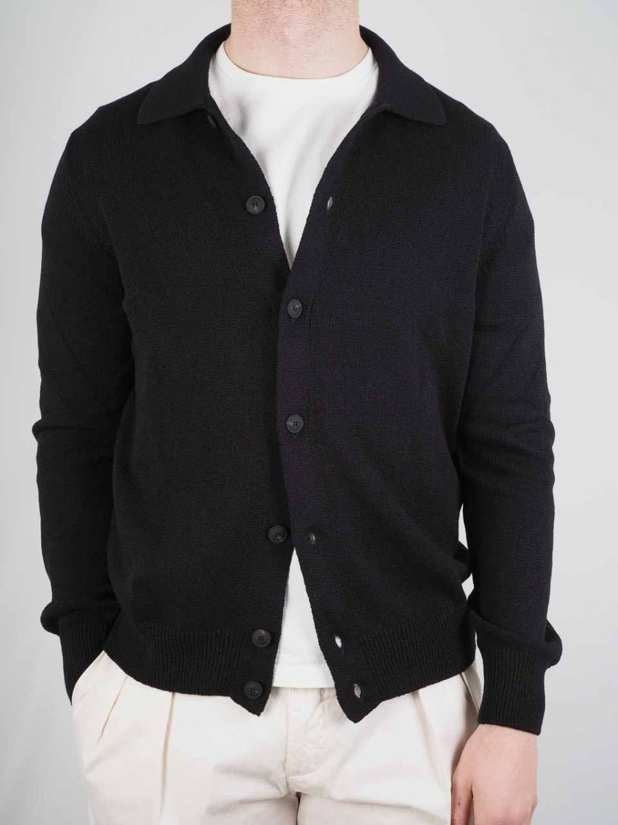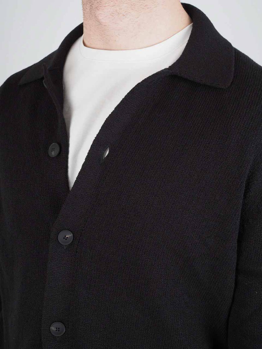 Knitted Cotton Cashmere Long Sleeve Shirt Black