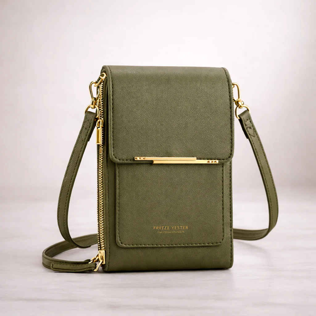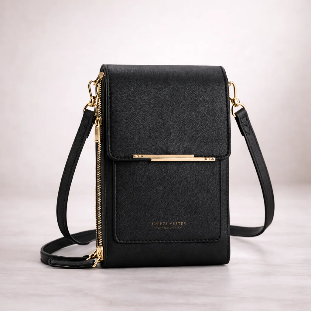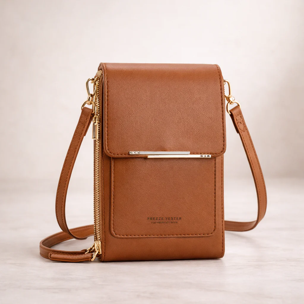 Denna lyxiga axelväska kombinerar innovativ pekskärm med en stilren silhuett för maximal bekvämlighet och stil. Perfekt för dig som vill ha snabb åtkomst och elegant funktion i ett kompakt format.