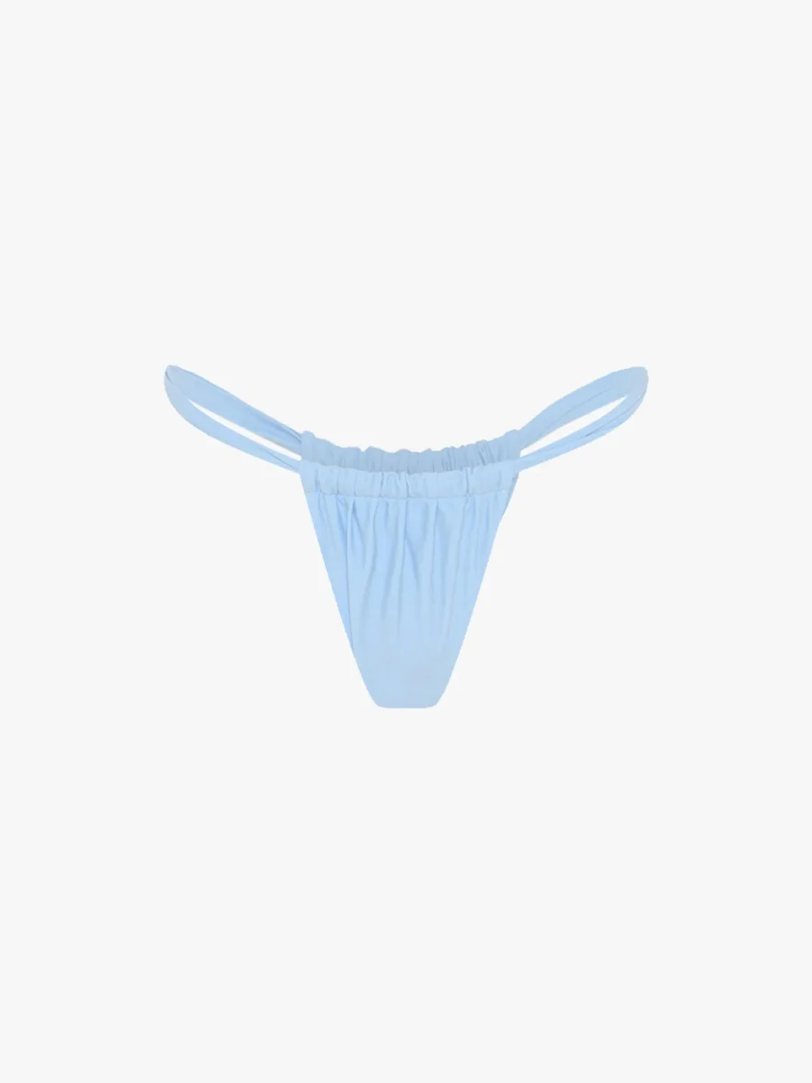 Nora Bikini har en klassisk botten. Täckningen av botten kan justeras längs rynkekanten på framsidan och baksidan.