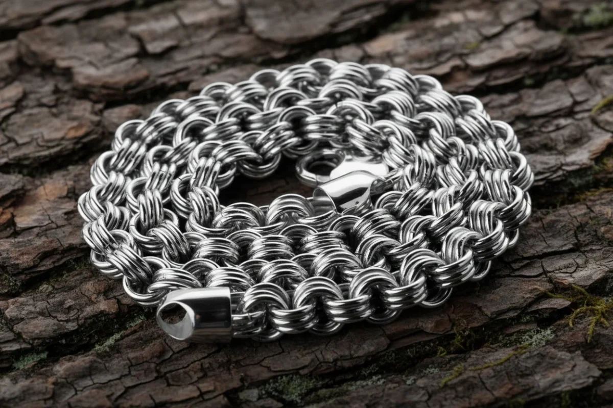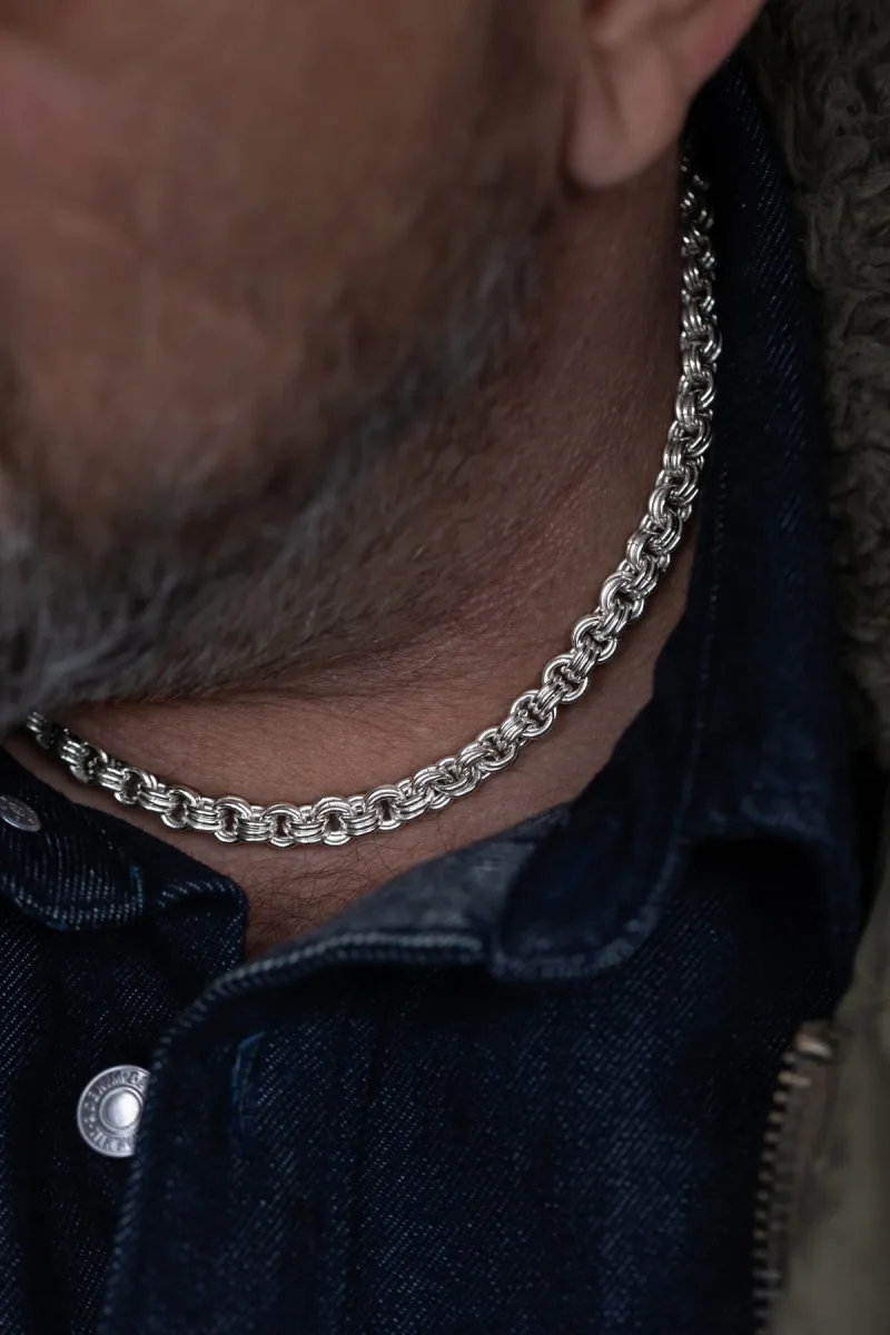 Sterling Silver Bismarck Link Chain for Men, High-Polished Necklace