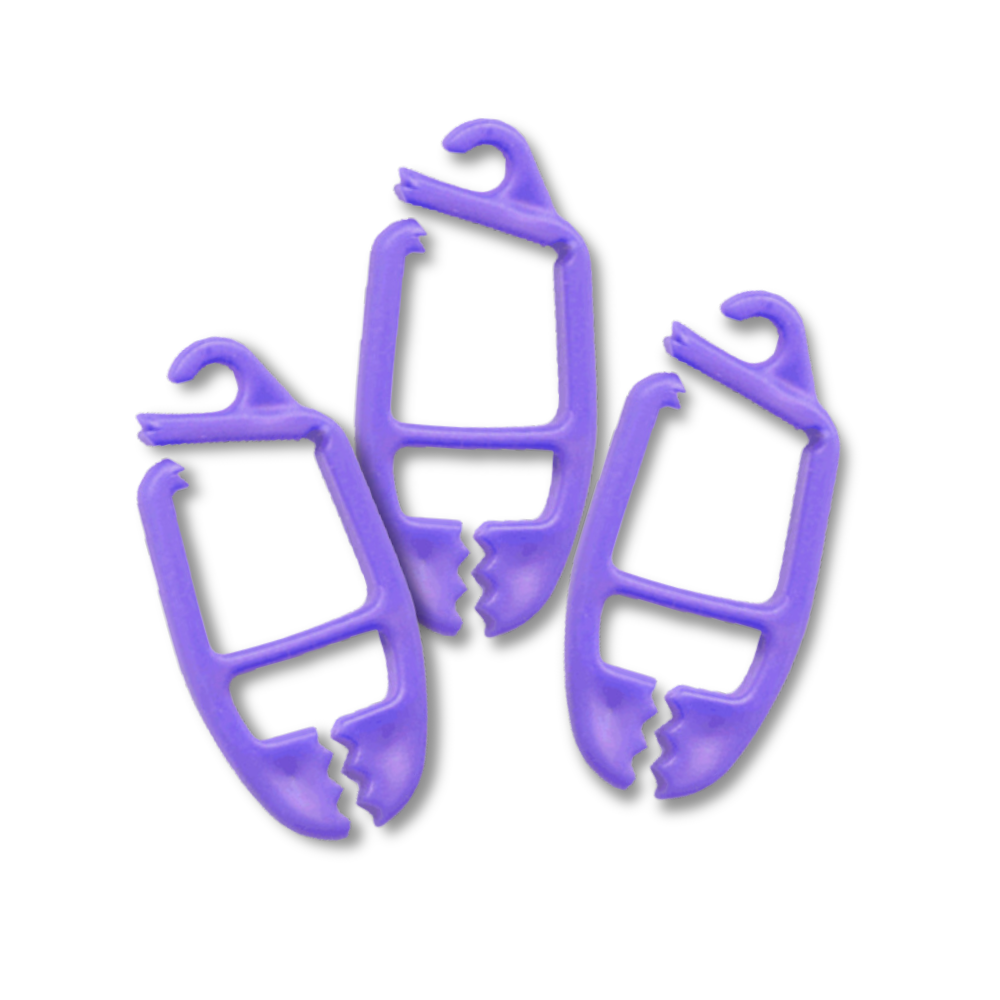 En förpackning med Supi strumpklämmor innehåller 15 klämmor och alla i denna förpackning är lila.