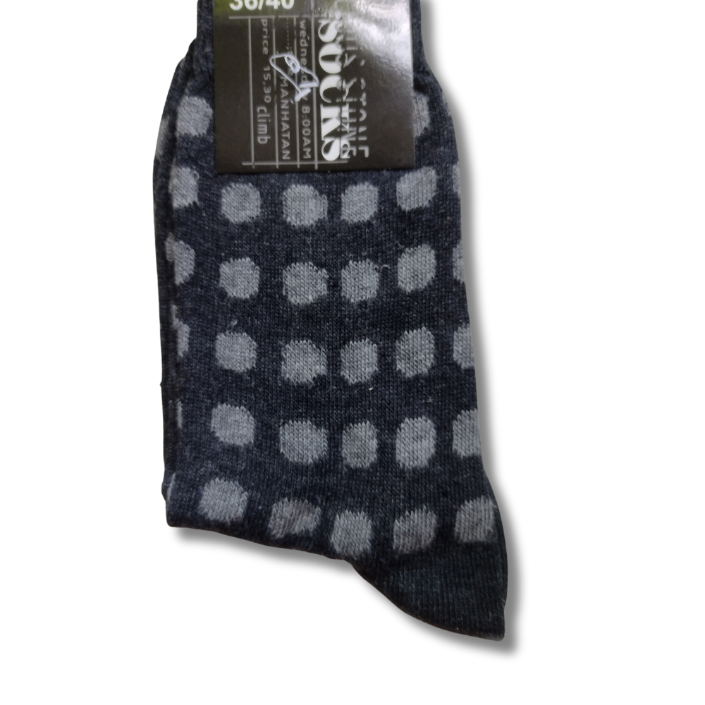 Detta är en lite tunnare sock med grå prickar på hela strumpan.