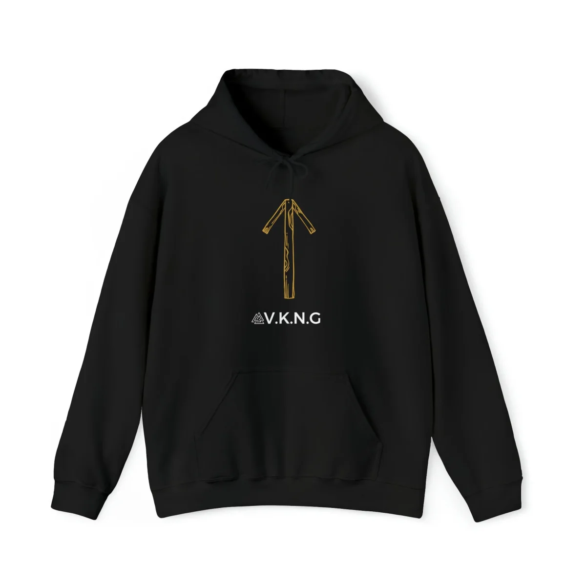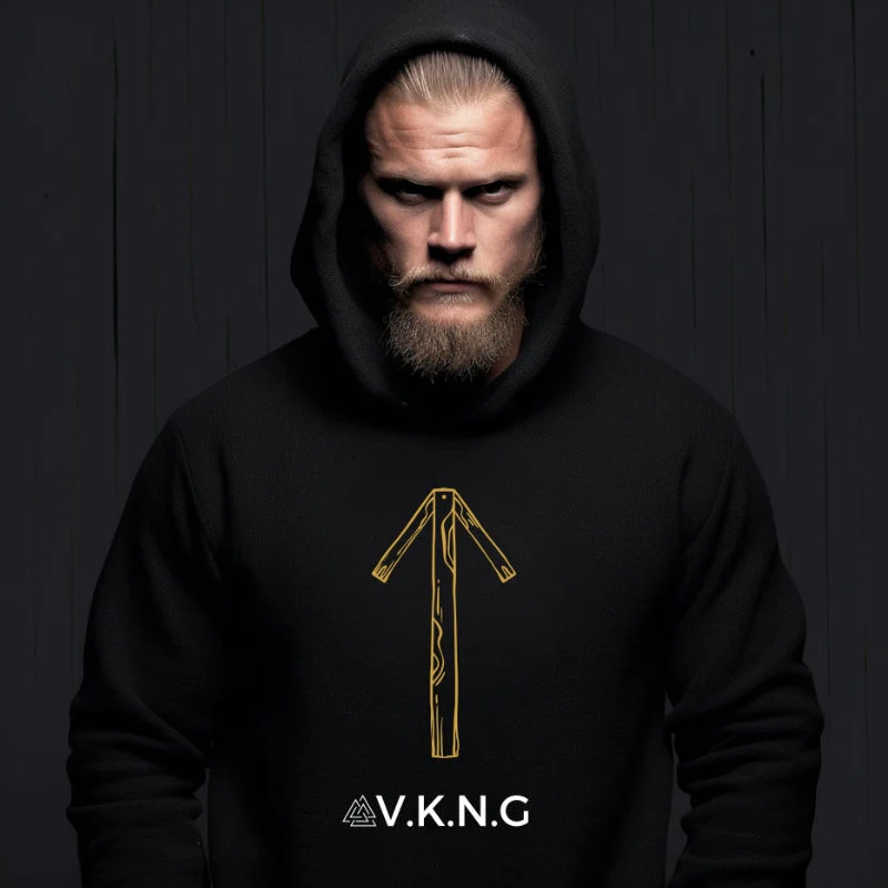The Vikings used a runic alphabet known as Younger Futhark. The Tiwaz rune represents the sound T in the alphabet. This rune was sacred to the god Tyr.