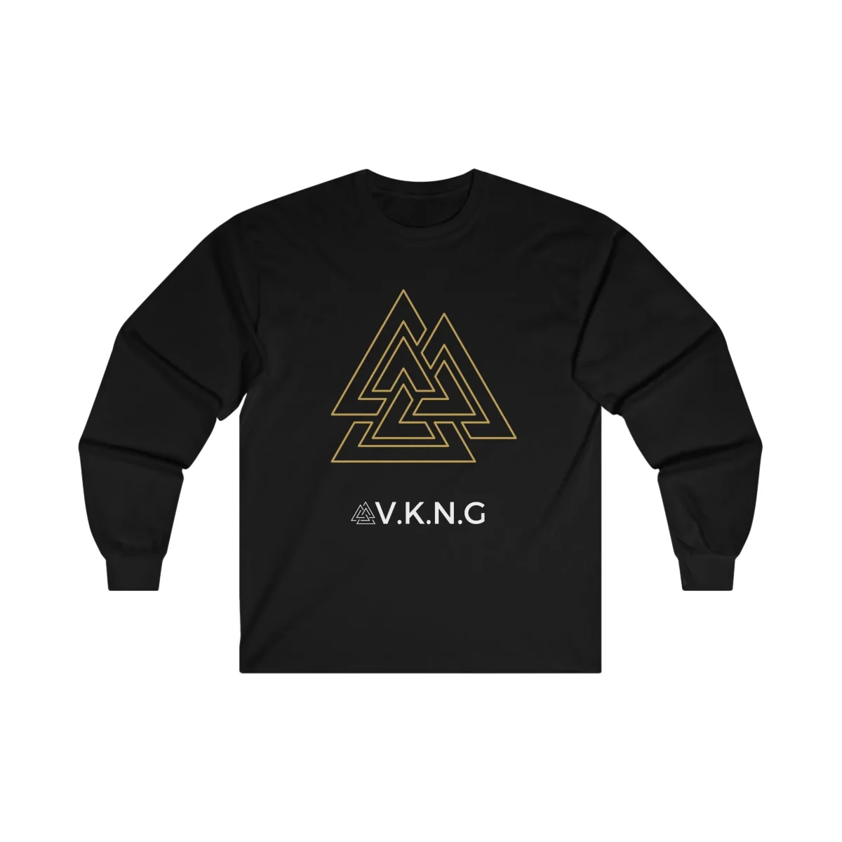 This high-quality t-shirt features a classic Valknut symbol, which also inspired the VKNG logo.