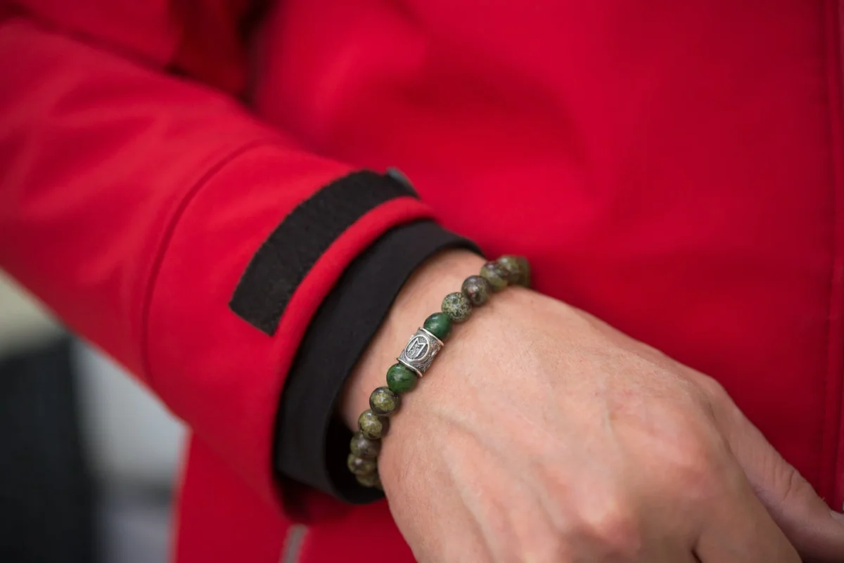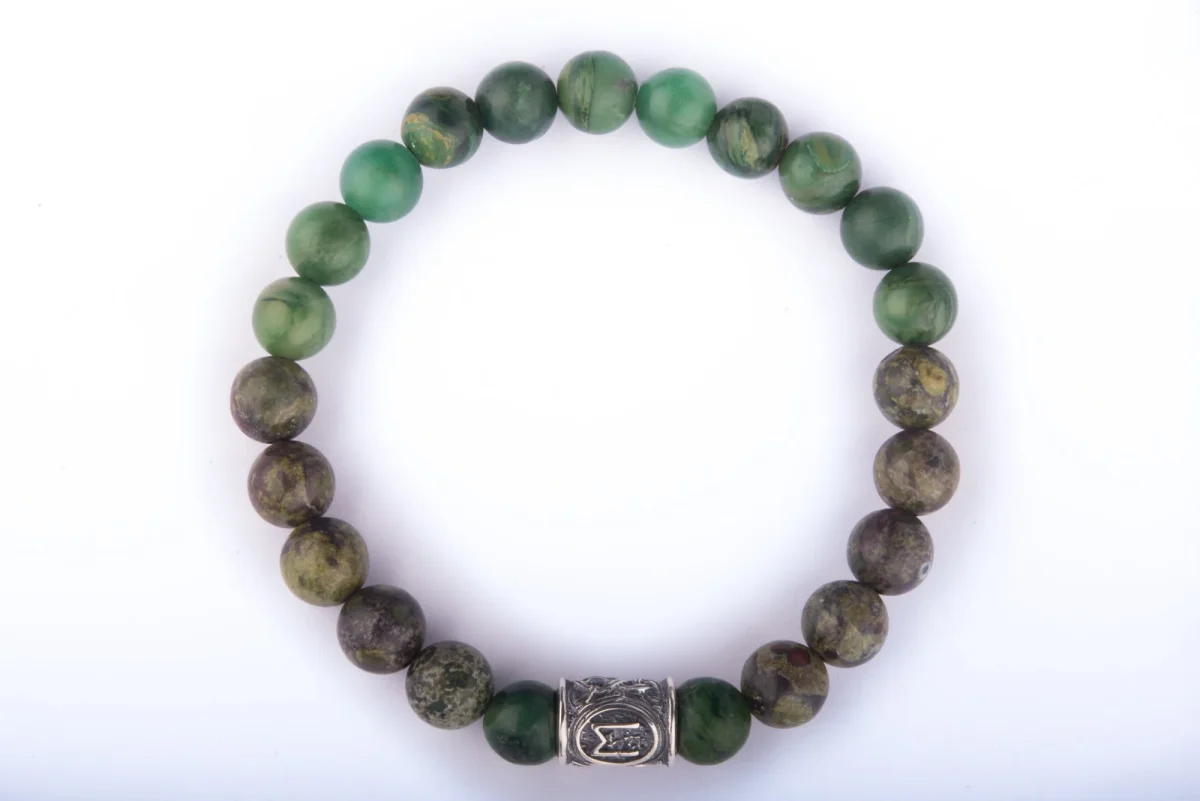 Viking Bracelet Gn Green Jasper And Nephrite With Rune Bead