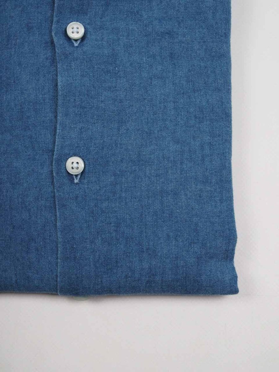 Washed Cotton Linen Denim Blue Shirt