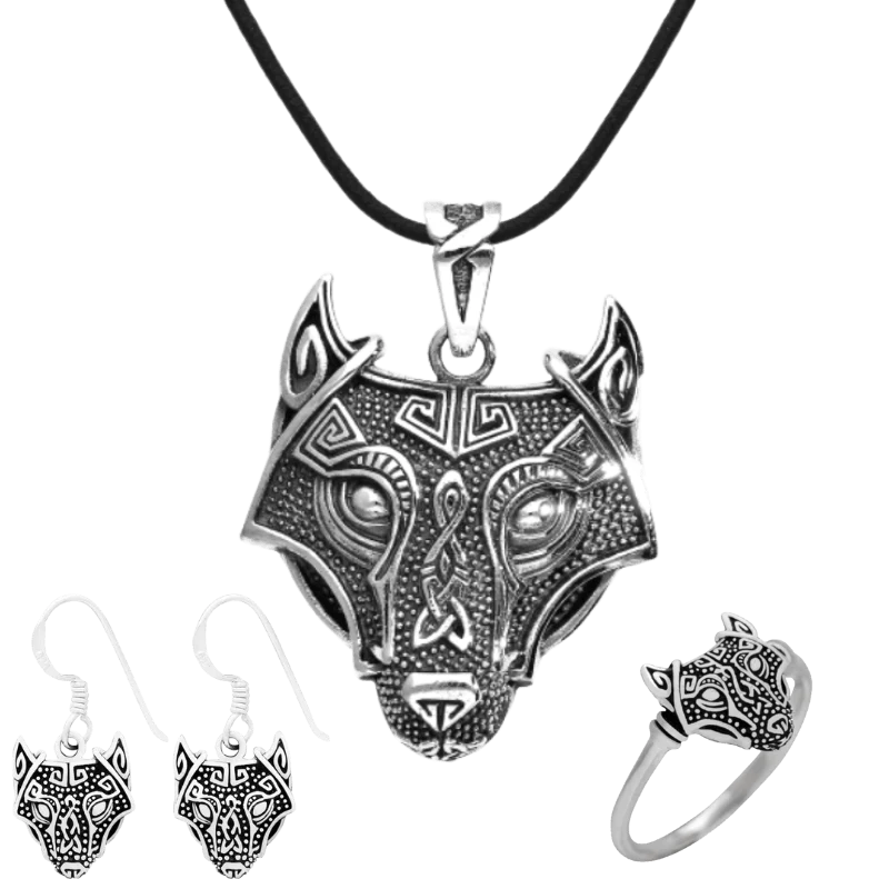 ✔ Gift set with earrings, necklace and wolf ring in sterling silver (leather cord included).