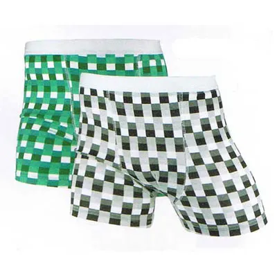 Ett par grön-rutiga kalsonger i storlek medium.