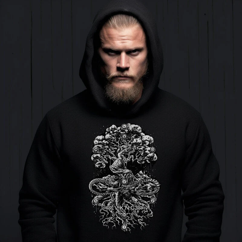 Wear this symbol proudly and stylishly with this t-shirt featuring a stylish Yggdrasil image.