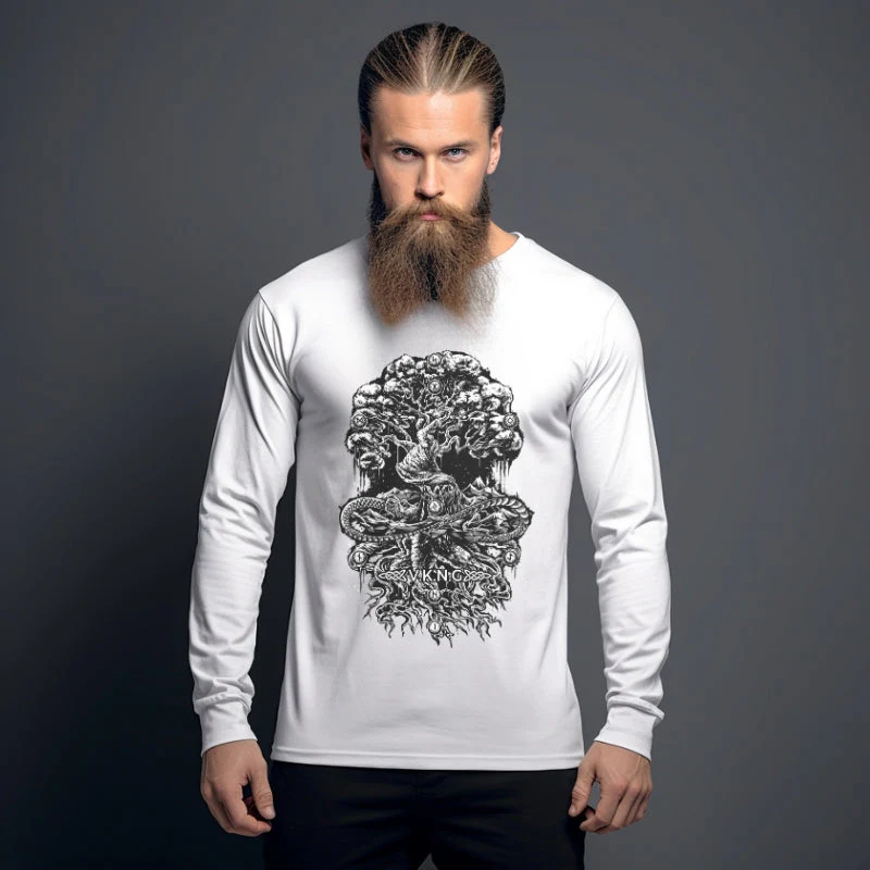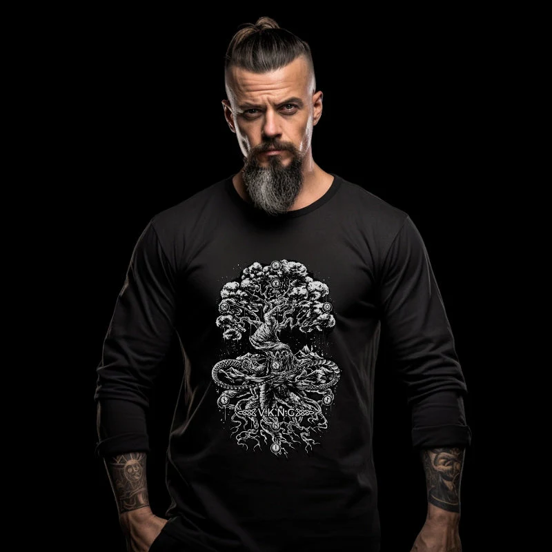 Wear this symbol proudly and stylishly with this t-shirt featuring a stylish Yggdrasil image.