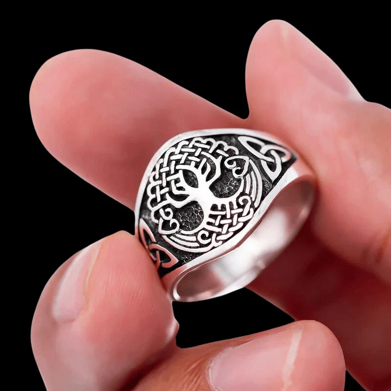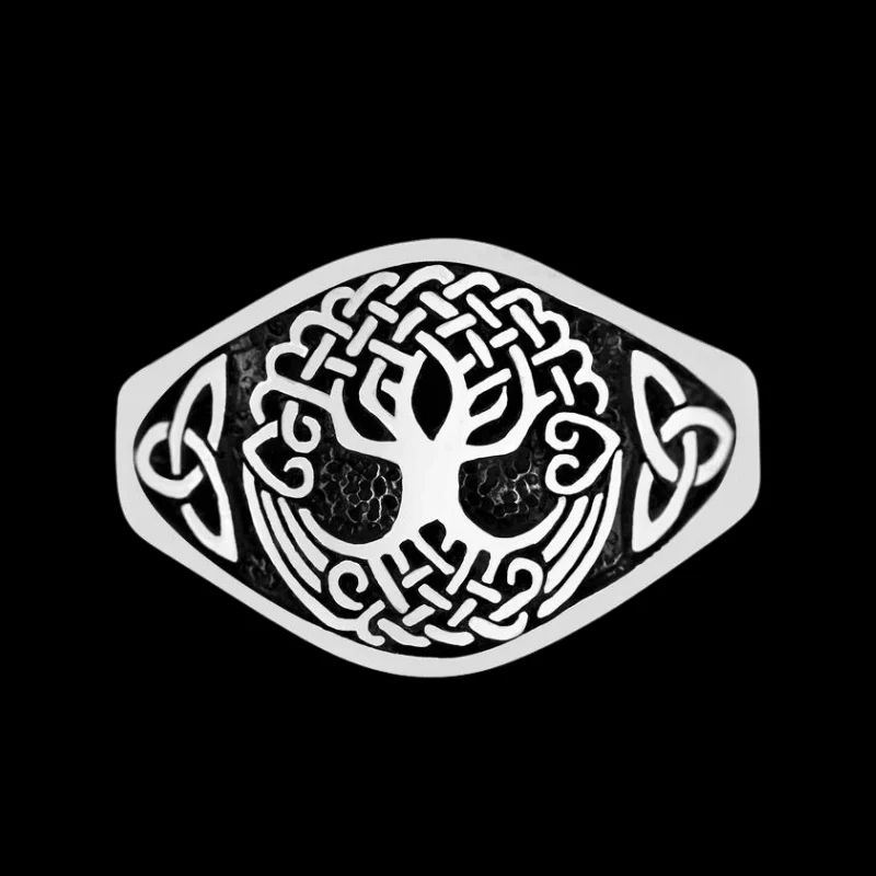 Yggdrasil With Triquetra Pagan Ring 925 Sterling Silver